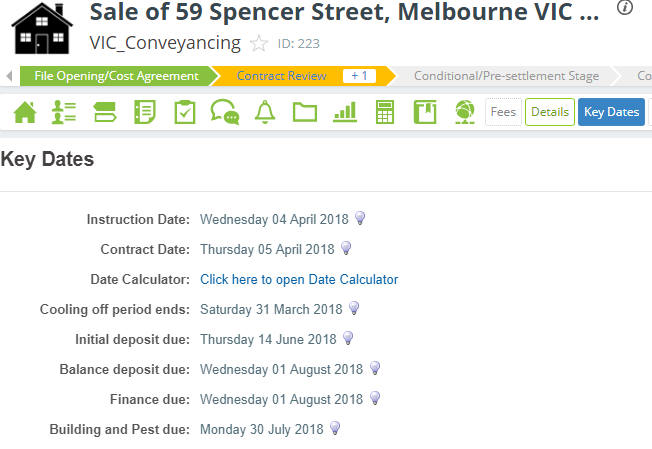 A number of automated tasks have also been set based on the conditions due. These tasks have also been grouped together under a taask view to assist with meeting the conditional. I list of the views can be here Konekta Conveyancing - List views for Conveyancing Add-on
