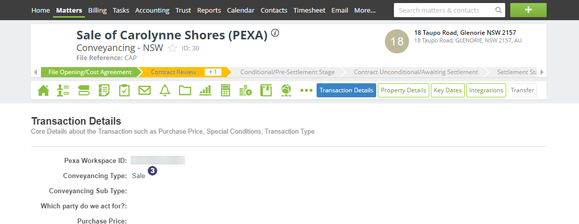 When you create a PEXA workspace using the Konekta integration, some fields are pre-filled with information from your Actionstep matter to save you time in re-keying these details.