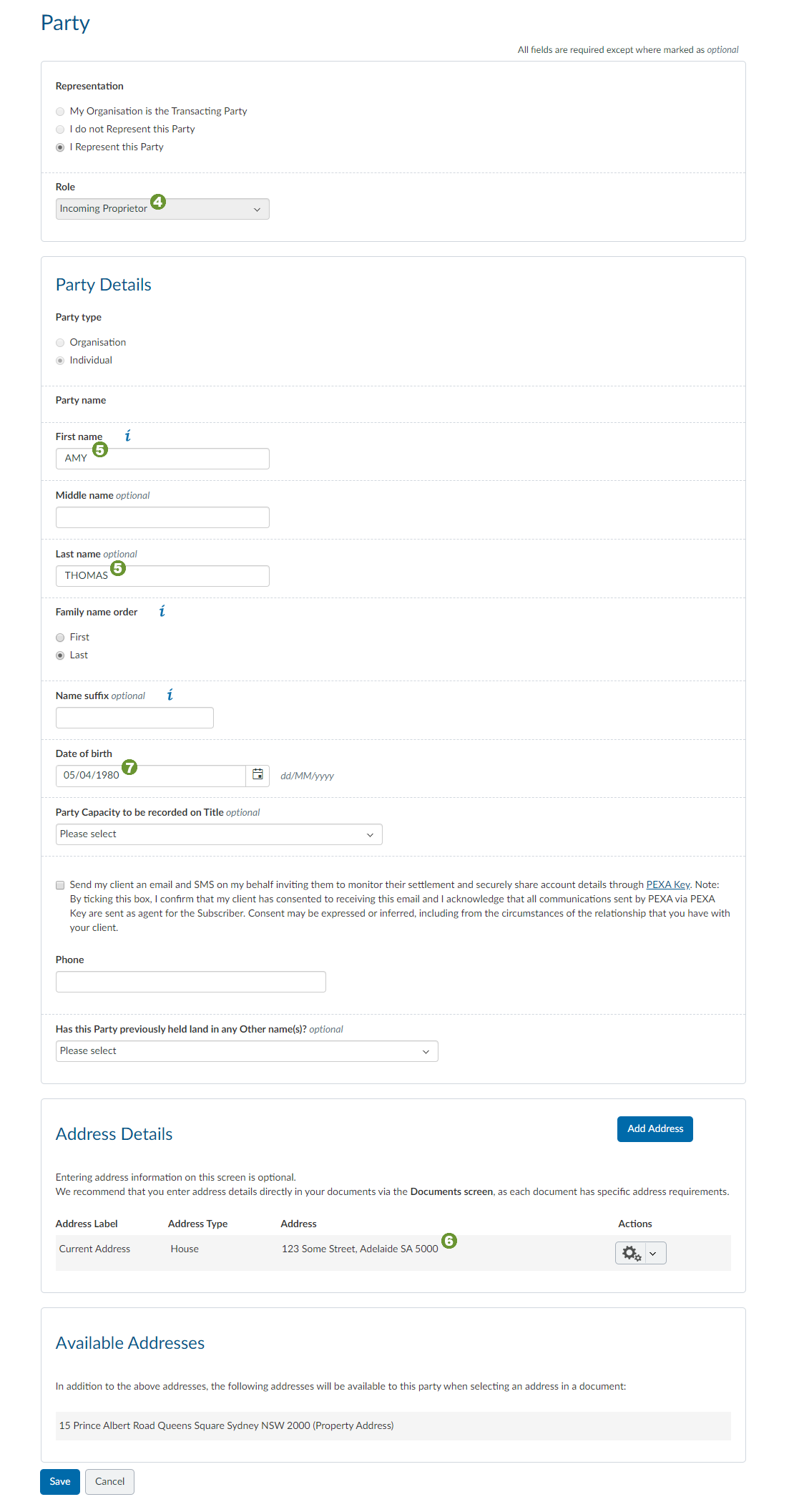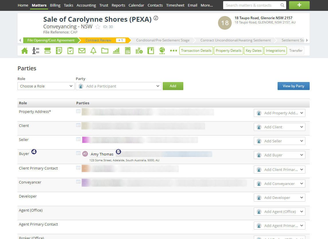 Below are screenshots of both Actionstep and PEXA that show which fields are mapped. Related or mapped fields are marked with the same number.