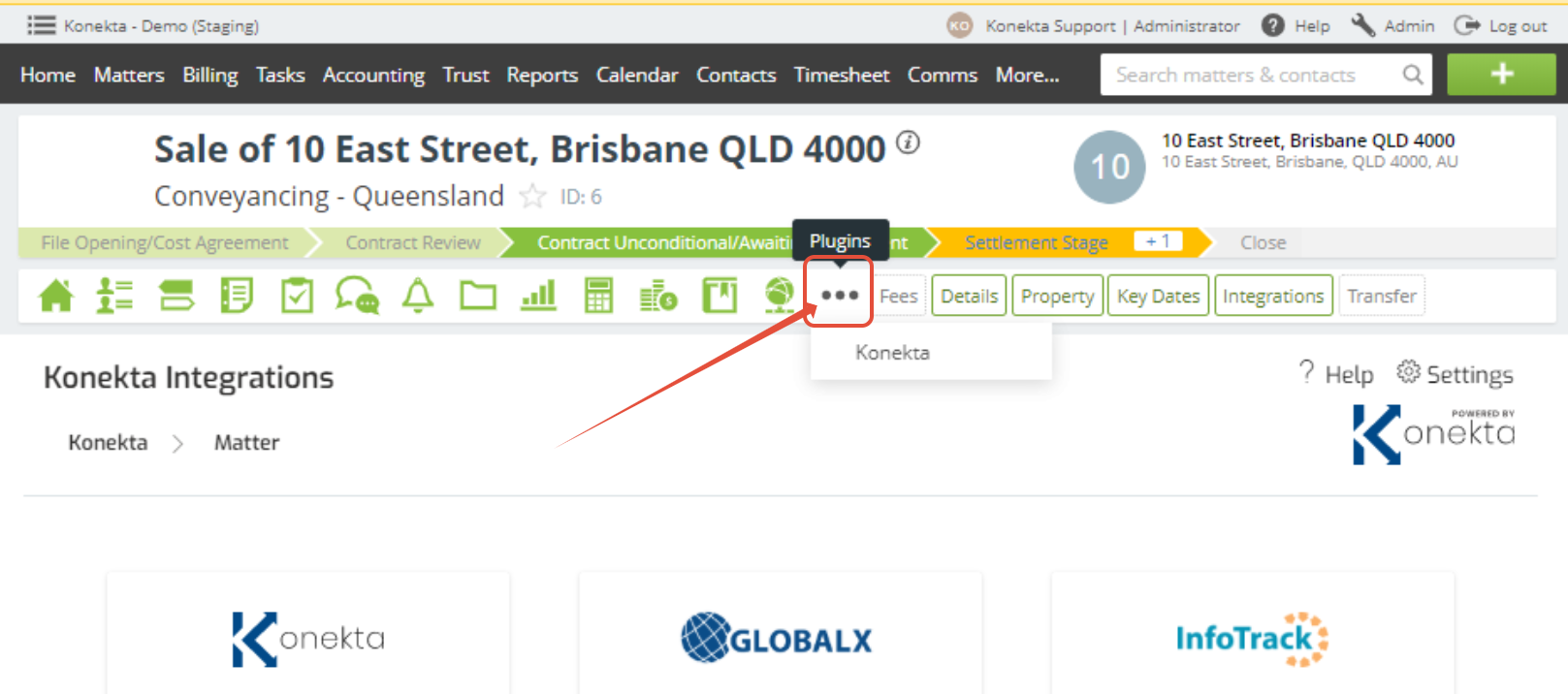 Available under the "Three Dots" menu in actionstep is the Konekta Integrations.