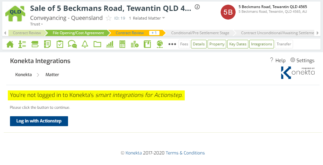 You're not logged in to Konekta's smart integrations for Actionstep.
