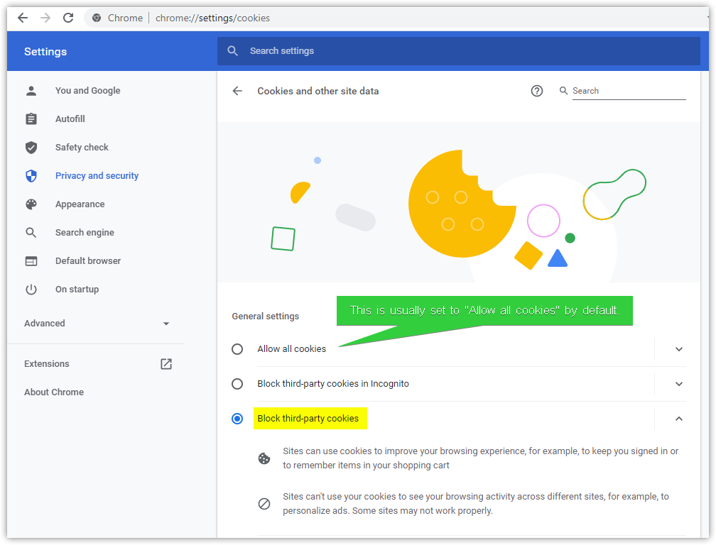 For example, if you have your web browser (such as Chrome) set to Block third-party cookies: