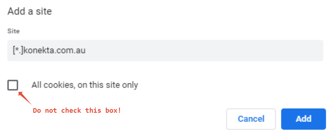 Important: Make sure you do not check the box labelled "All cookies, on this site only"